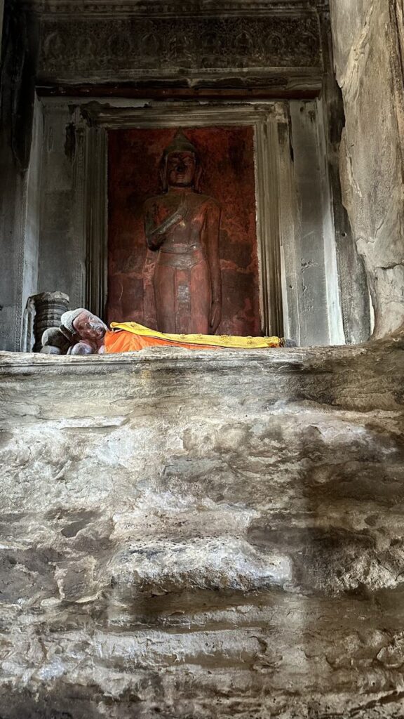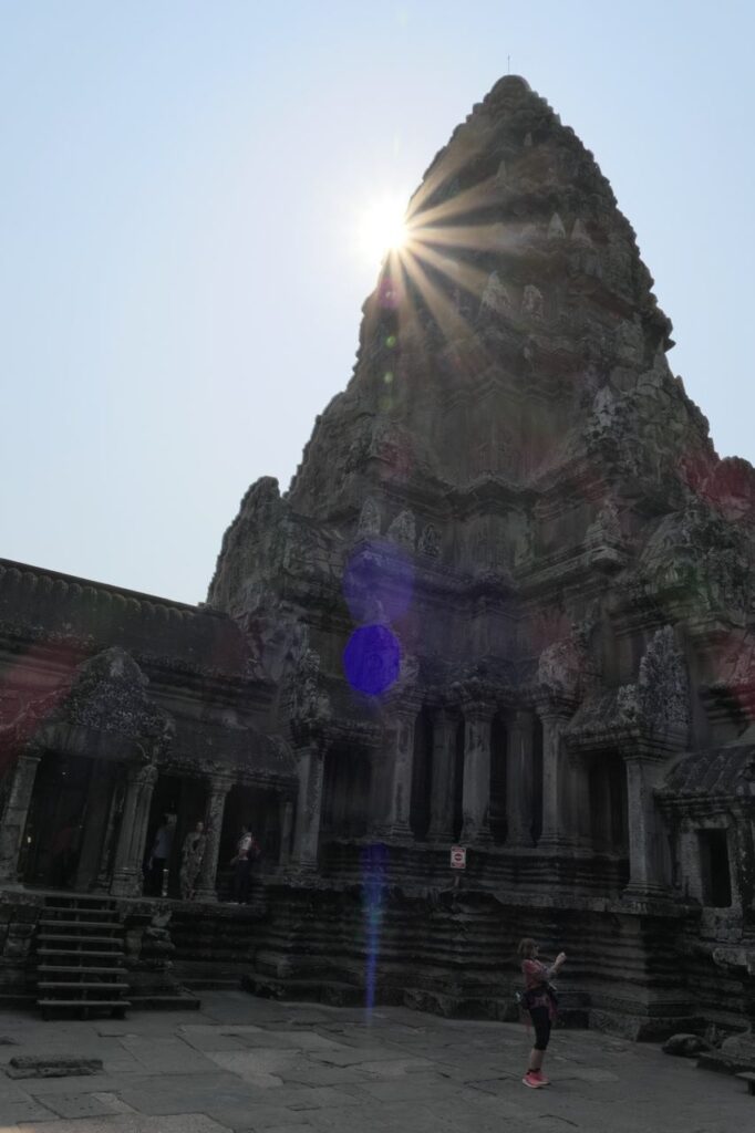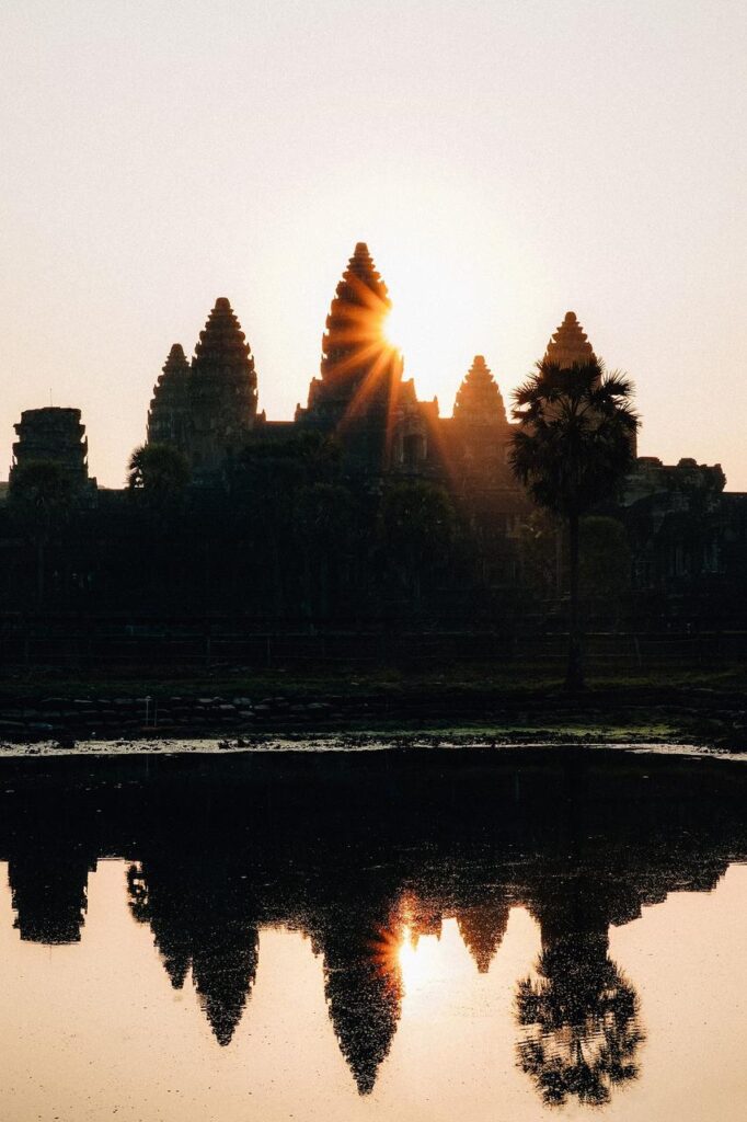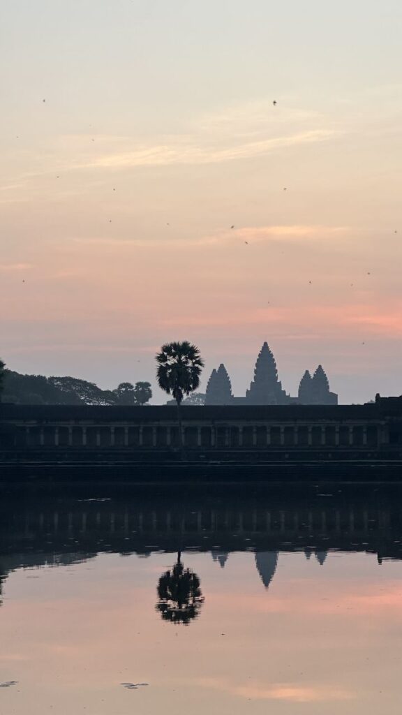 Am nächsten Morgen ging es gleich weiter mit dem nächsten Highlight… Angkor Wat im Sonnenaufgang. Leider bin ich gestolpert und habe mir ziemlich hart einen Zeh angestoßen, was mich für diesen und den nächsten Tag etwas ausgebremst hat. Wir blieben etwas außerhalb und der Tempel selbst war für meinen Geschmack noch etwas weit weg. Larissa ist noch einmal hinein gegangen und hat noch einige weitere grandiose Fotos geschossen (es lohnt auch ihr Instagram Profil zu besuchen!). Aber seht selbst – pure Magie!