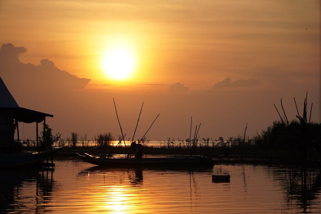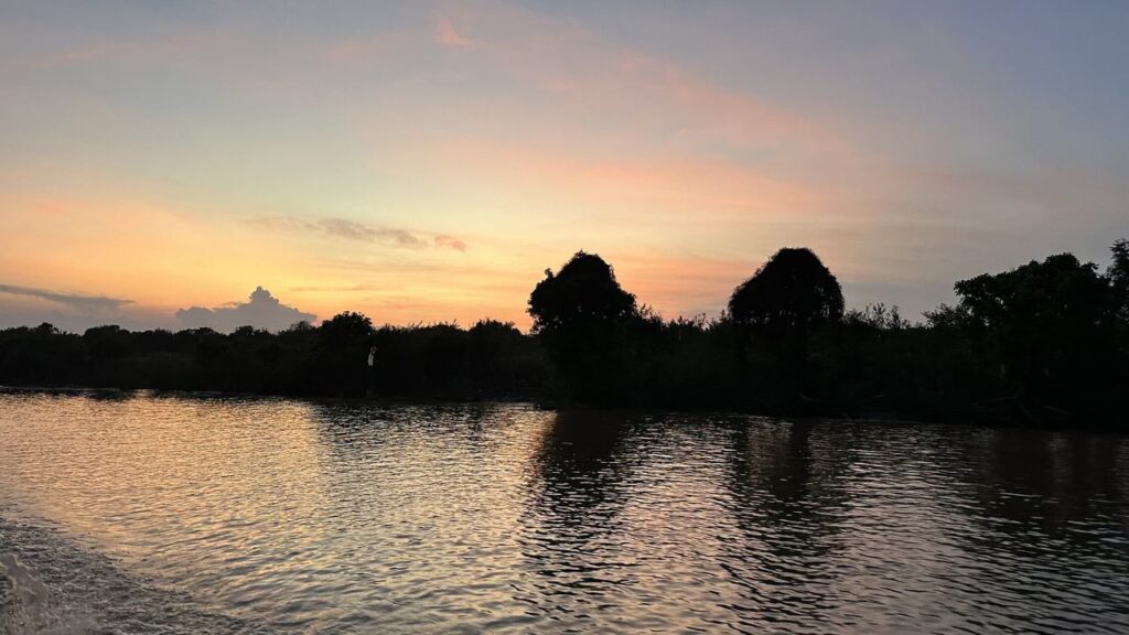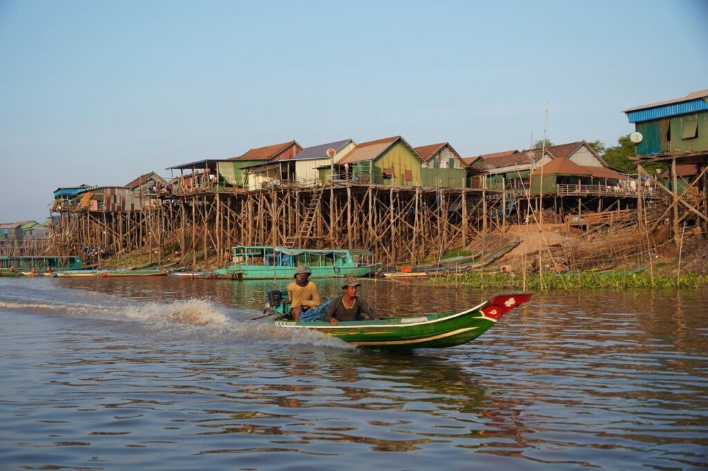 Nach so vielen Tempeln ging es dann noch in Windeseile zum Tonle Sap See. Der See hat einen Höhenunterschied von 10m zwischen Trocken- und Regenzeit. Daher stehen hier alle Häuser auf hohen Stelzen. Wir sind (völlig überteuert in unseren Augen) für gute 20$ pro Person einmal raus gefahren für den Sonnenuntergang und wieder zurück. So richtig gelohnt hat sich die lange Fahrt (die ja noch extra kommt) hin und zurück dann aber auch nicht gelohnt…