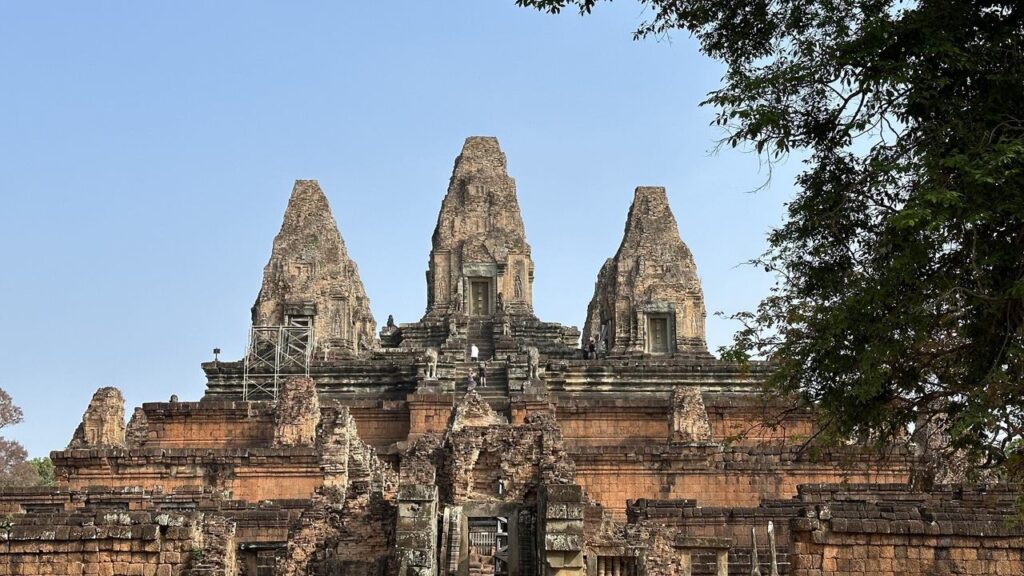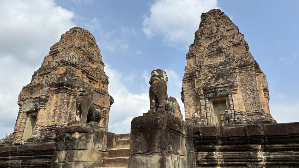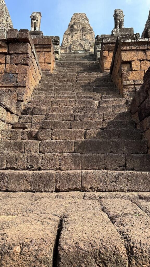 Anschließend ging es zuerst nach Pre Rup. Dieser Ort wurde zeitlich sogar vor Angkor im Champa-Stil, also aus Ziegeln, erbaut. Mebon lag einst innerhalb eines Wasserreservoires. Im Grunde sind die beiden fast baugleich, jedoch hat Mebon große Elephantenstatuen in den Ecken des Gebäudes. Hier befanden sich auch hinduistische Kremationsstätten.
