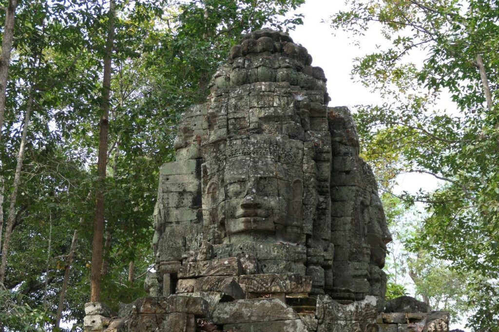Ta Som stammt vom gleichen Baumeister wie Bayon oder Ta Prohm. Auch hier gibt es noch einige alte Bäume, doch viele wurden hier bereits entfernt. Offenbar sehen die Figuren hier aus wie Großvater Som 😉 Hier sieht man auch einige nur halb fertig geschnitzte Fenster. Anders als in Petra ging man hier von unten nach oben vor.