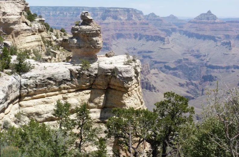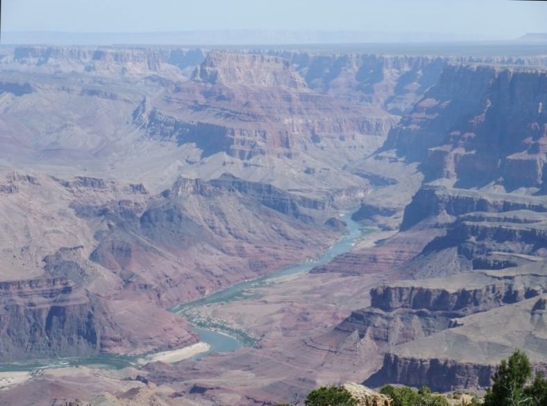 Grand Canyon läßt sich mit den Sinnen kaum erfassen! Über 450 Flusskilometer lang und alleine die andere Kante (wir waren am „South Rim“) ist gut 13 km weit weg. Daher wirkt auch immer alles ein bisschen diesig – das ist einfach Luft 😉