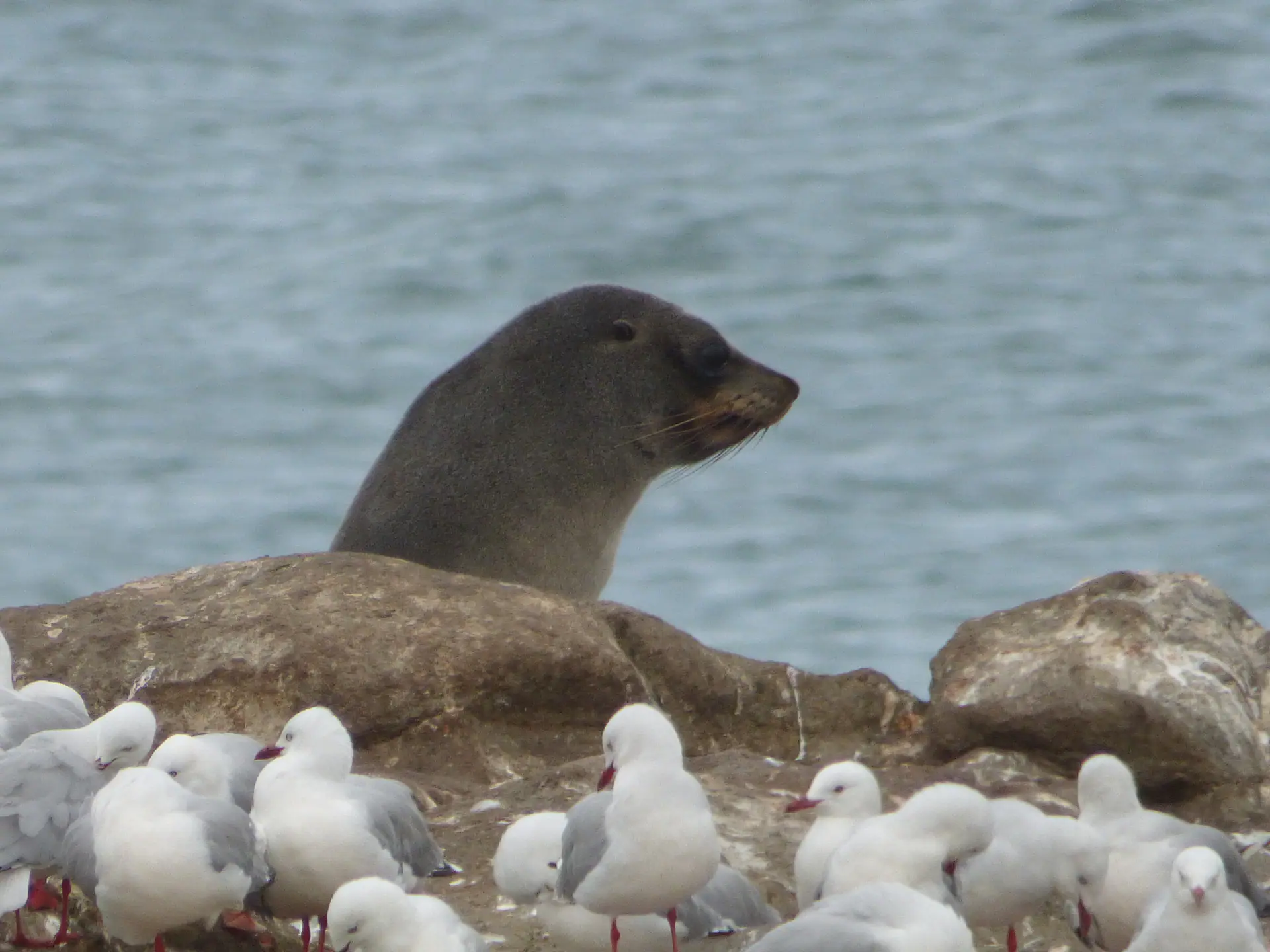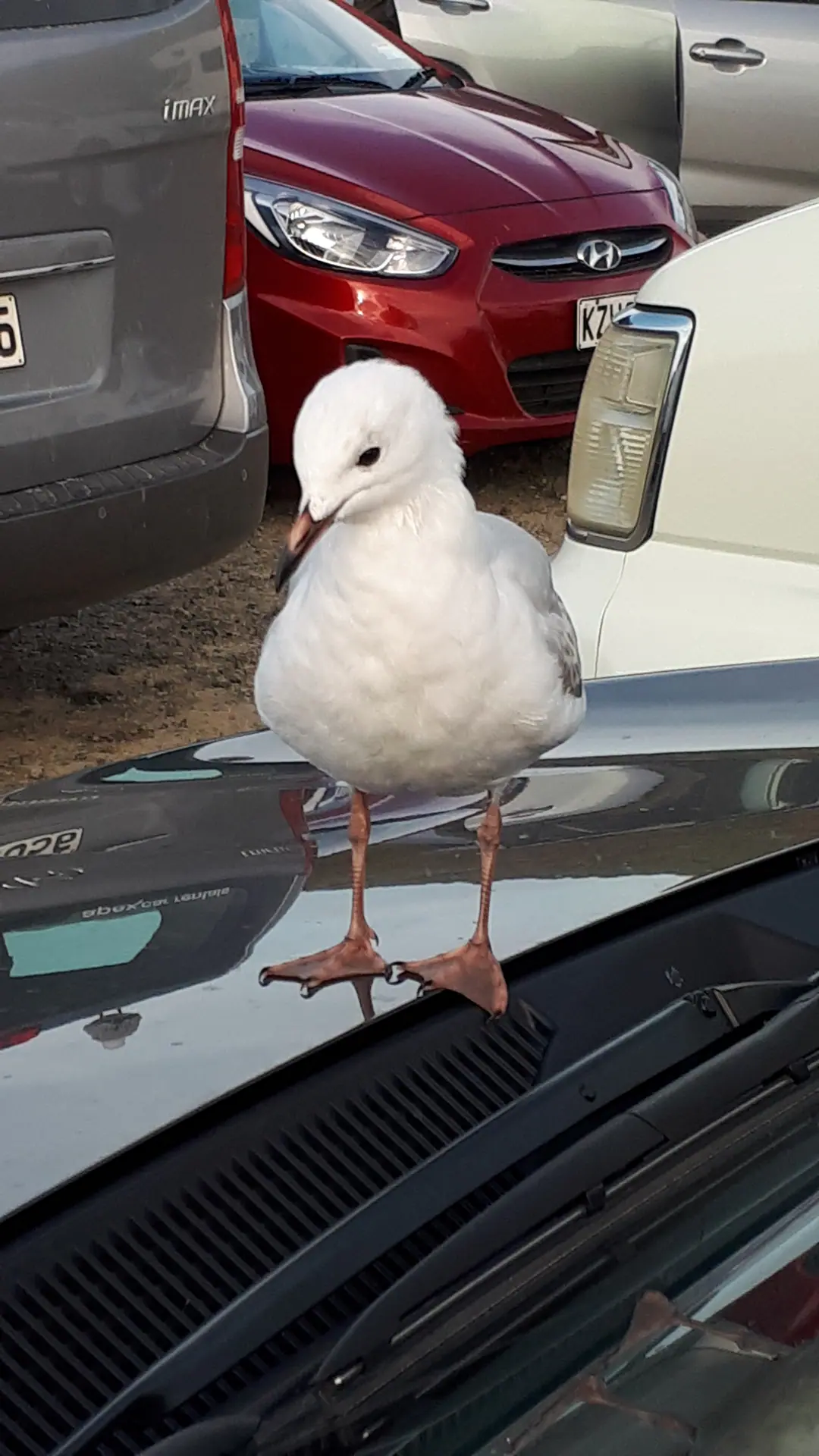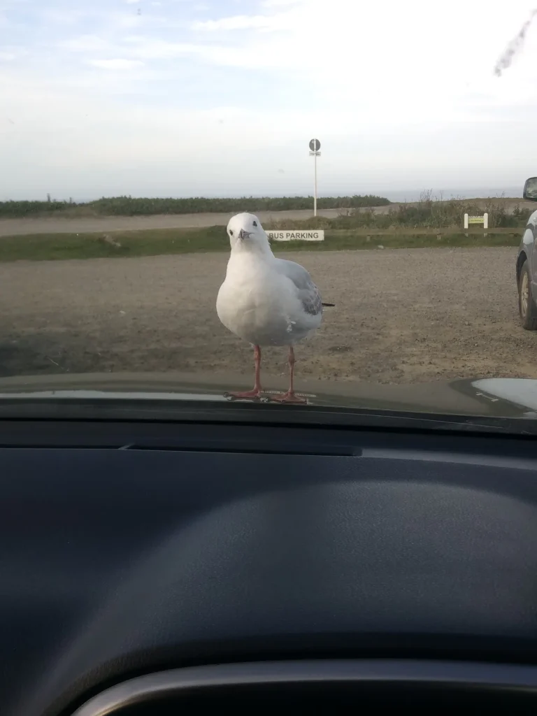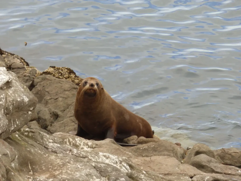 Last but Not Least sind wir dann die komplette Otakou Peninsula bis Harington Point hoch gefahren, haben das Royal Albatros Center besucht und noch mehr Robben und Kormorane beobachtet. Bei den Abfahrt hatten wir noch einen neugierigen Besucher auf der Motorhaube. Hat sich nicht stören lassen.