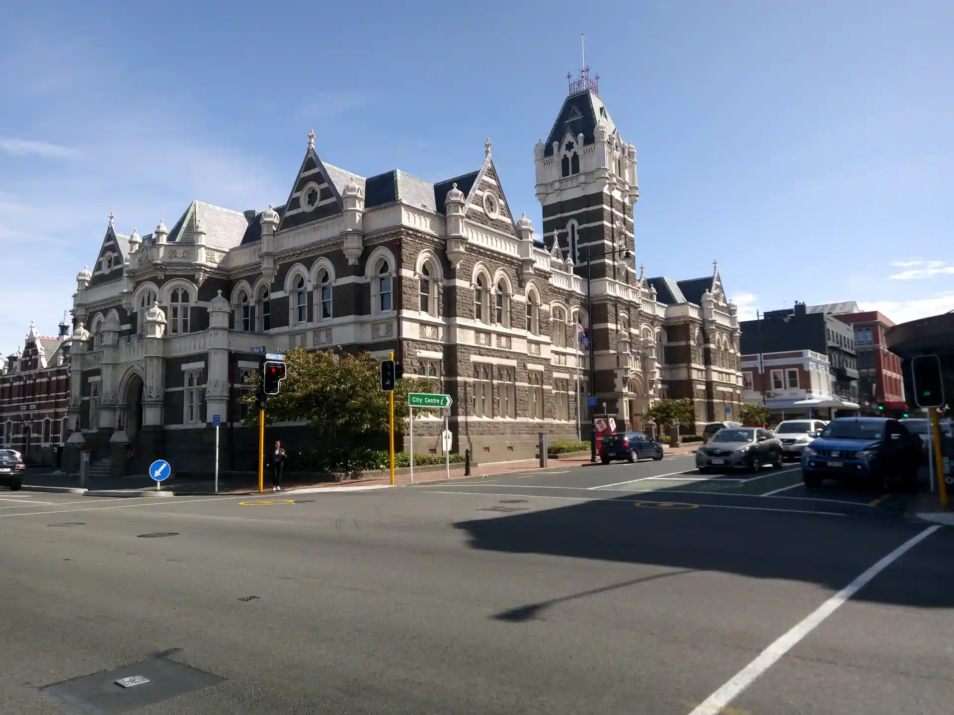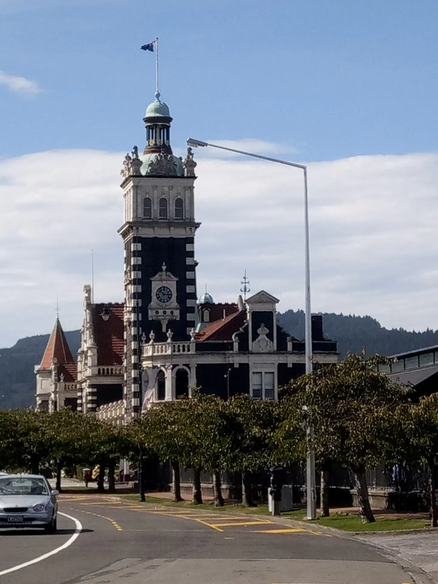 Vom Trail aus waren es dann nur noch 5km bis in die Stadt nach Dunedin. Dort haben wir den historischen Bahnhof und einige andere schöne Gebäude bestaunt und haben etwas gegessen. Für mich gab es „Battered Cod“ – den örtlichen Backfisch. Mega lecker!