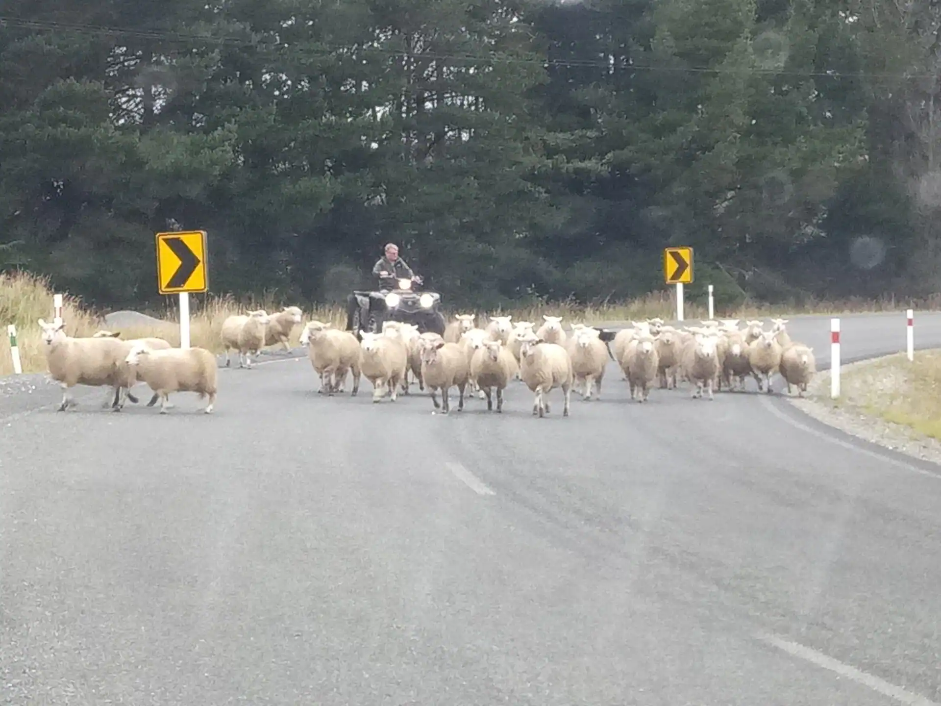 Zum Einen gibt es hier rollende Hügel… Und Schafe! Mit den eingebetteten Seen hat es viel von Schottland. Zum Zweiten wird hier in einem Maße abgeholzt, dass sich bei uns niemand vorstellen kann. Da liegen riesige Landstriche blank, bzw voll von Ästen und Rinde, feinsäuberlich in Reihen abgelegt. Über Meilen und Meilen… Und zum Dritten bedeutet es nicht, wenn ein „Catrin Rainforest Center“ angegeben ist, dass da auch etwas ist… Ausser vielleicht dem Zentrum des Regenwaldes Irgendwo mittendrin trafen wir auf einen Schäfer, der unsere Vermutung bestätigte, dass moderne Schäfer heute auf Quads setzen statt auf Pferde oder Fussarbeit.