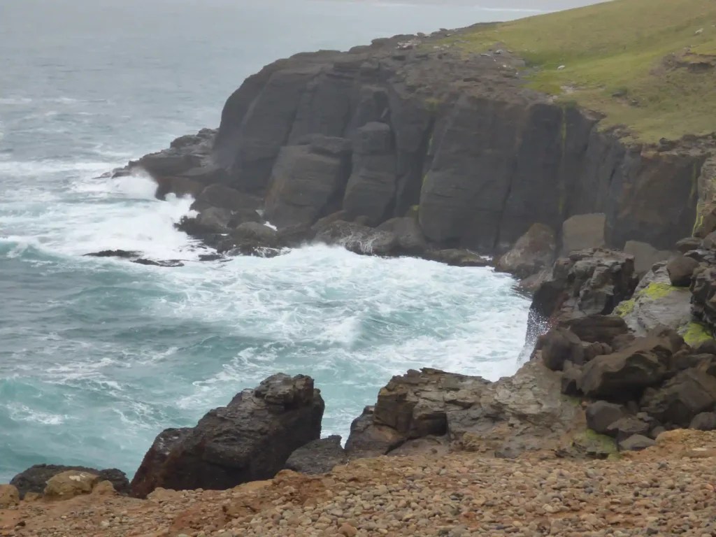Anschließend haben wir die Niagara Falls gesucht. Ja, richtig gelesen. Leider war der Wasserstand zu hoch, daher keine „Falls“ zu sehen der nächste Stopp führte uns dann an den südlichsten Punkt der Südinsel. Martina, die alte Seebärin, hat dem 100km/h Wind getrotzt, um schöne Fotos der rauhen See an den schwarzen Klippen zu erhaschen.