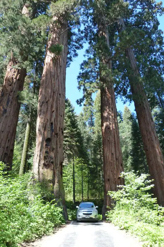 Wir waren im Sequoia Nationalpark! Eine sehr gewundene Straße führt in engen Serpentinen auf fast 2500m hoch und läßt einen näher heran rücken an die zweitgrößte, zusammenhängende Wildnis der USA, durch die keine Straße führt! Es gibt jede Menge unberührter Natur und natürlich in mehreren Hainen (Groves) die einfach unfassbar riesigen und großen Sequoia Bäume. Wir haben sowohl den vom Volumen her größten Baum der Welt gesehen, als auch den vom Basisumfang her größten Baum.