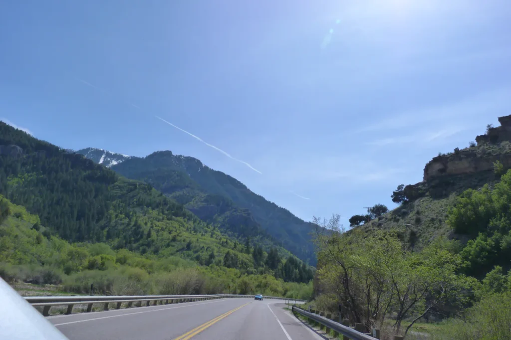 Weiter ging es, ein kleines Stück durch Idaho, am türkisen Bear Lake vorbei und nach Utah. Das letzte Stück nach Salt Lake City war dann Interstate und – ganz ehrlich? – das Stück war nicht besonders schön. Das Tal, in dem Salt Lake City liegt, ist von oben bis unten zugebaut und es gibt so überhaupt garnichts zu sehen. Unser Hotel dort war leider recht günstig – sowohl vom Preis, als auch von der Lage an der Interstate. Man hätte die Nacht jedem Auto einzeln winken können 😉