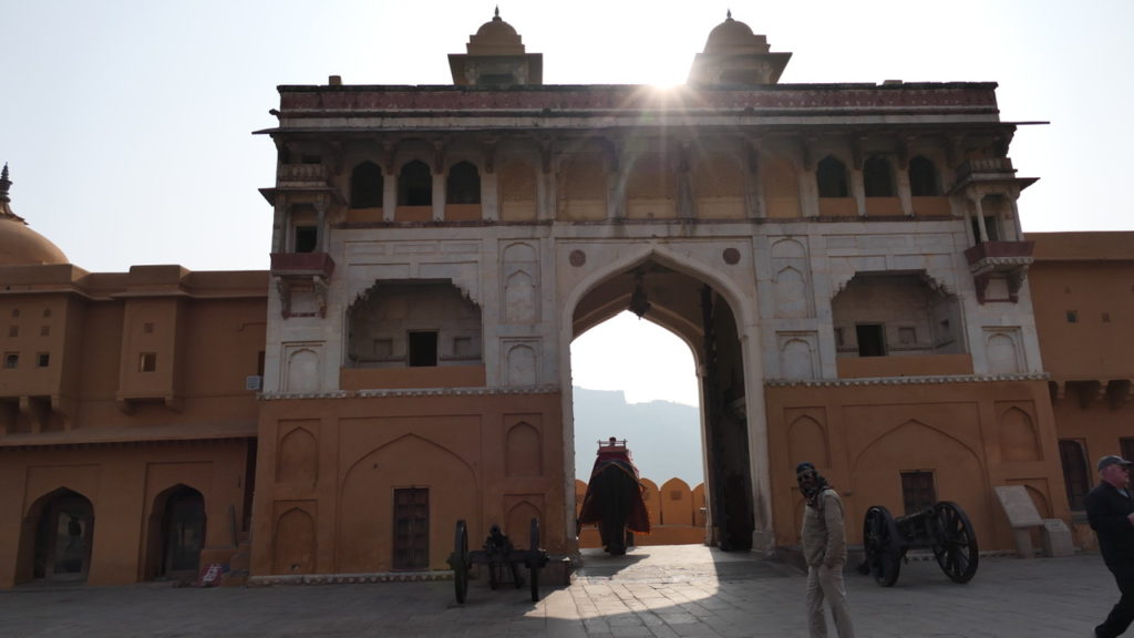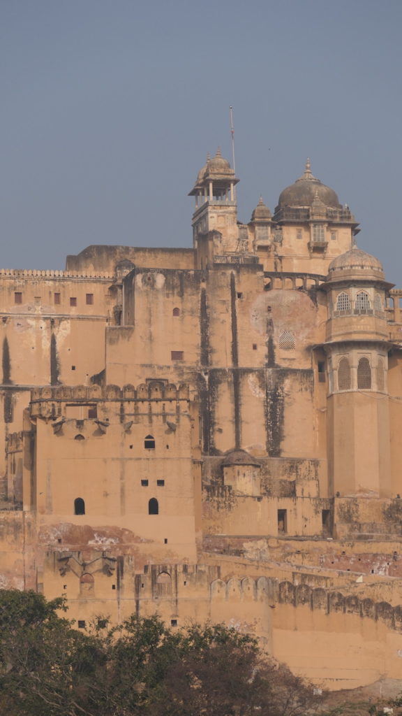 Nach dem Abstecher zum Brunnen ging es also in das Amber Fort (übrigens – ein UNESCO Weltkulturerbe ^^). Die ersten Bauwerke stammen aus 1604, die Stadt und der Palast/das Fort wurden jedoch 150 Jahre lang immer wieder erweitert, bis die Hauptstadt der lokalen Herrscher nach Jaipur verlegt wurde. Das Areal ist 4 Quadratkilometer groß – wir sind also einige Meter gelaufen. Die Fotos können nicht im Entferntesten darstellen, wie groß und wie großartig das alles einmal gewesen sein muss. Als jede Oberfläche bemalt, mit Spiegeln bestückt, mit Gold belegt oder mit feinsten persischen Teppichen ausgelegt war.