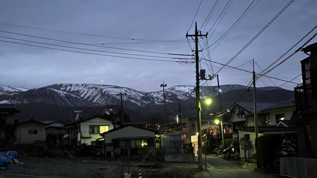Weiter ging es also mit der Bimmelbahn über Nagano (nur ein „kleiner“ Umweg) nach Kutastu-Onsen in den japanischen Alpen. Ein Bus brachte uns dort hin und fuhr mitten durch abgelegene Feriengebiete und sogar Ski-Anlagen. Unsere Unterkunft war wieder riesig, allerdings etwas außerhalb. Dafür hatten wir unsere eigene Badewanne mit heißem Schwefel-Quellwasser (pH 2,6 etwa…). In der Dämmerung gingen wir das erste Mal in die Dorfmitte (der Geruch von Schwefel liegt über allem dort) und waren dann doch ziemlich beeindruckt von der heißen Haupt-Quelle, dem Yubatake. Dort kommen mehrere zehntausend Liter etwa 60 Grad heißes Wasser pro Minute ans Tageslicht, wird zum Abkühlen über Holzkisten geleitet und ist nachts sehr schön beleuchtet. Und da es nur 4 oder 5 Grad Außentemperatur hatte, dampfte es auch ganz ordentlich 😉