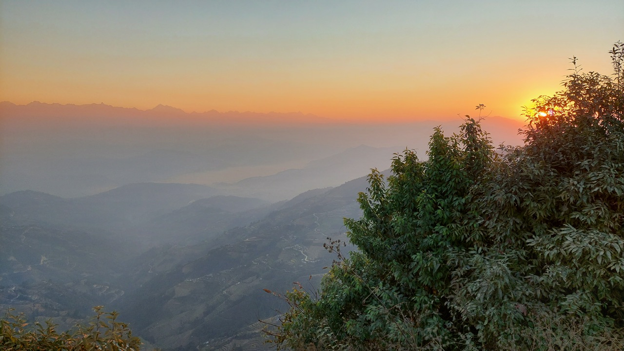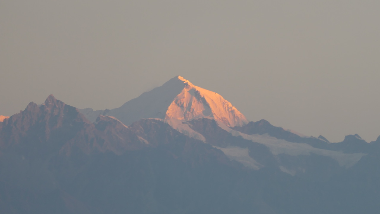 Am nächsten Morgen ging es im Dunkeln schon raus, da wir eine knappe halbe Stunde zu einem Aussichtspunkt gefahren sind, von dem aus wir den Sonnenaufgang beobachten sollten. Dick eingemummelt in Daunen- und Fleeceschichten konnten wir das Spektakel rundum genießen. Laut Übersichtsplan konnte man sogar den Mount Everest sehen. Irgendwo rechts in der Bergkette ^^