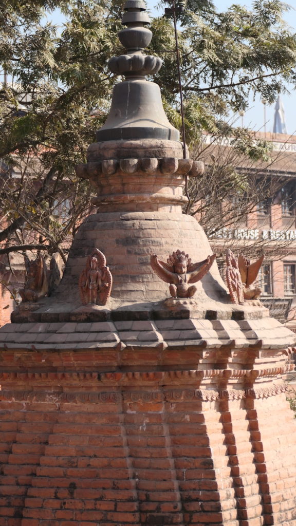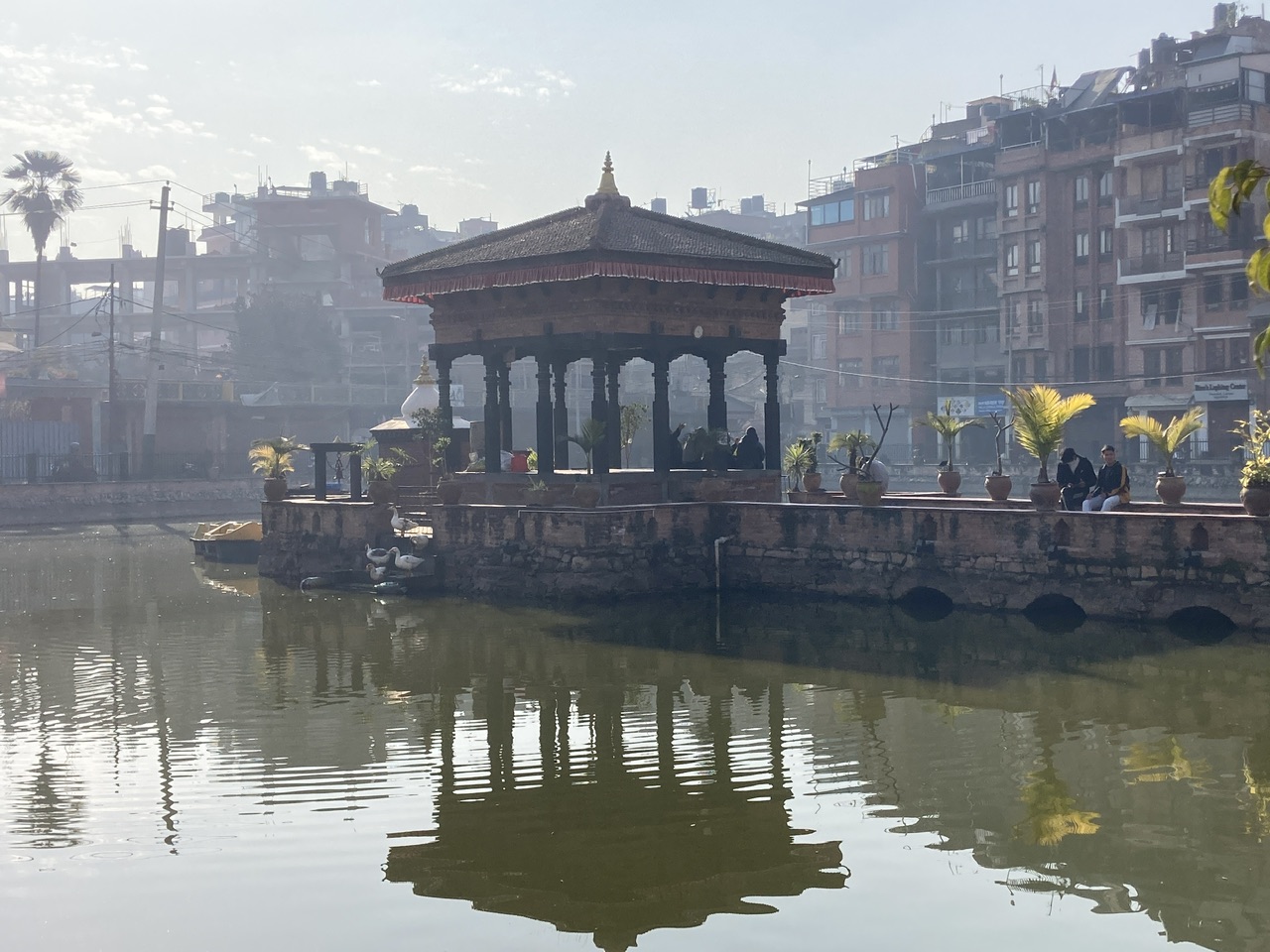 Am dritten Tag der Tour ging es raus aus der Hauptstadt in angrenzende Gebiete des Kathmandutals. Zunächst nach Patan oder auch Lalitpur, wo wir den Pimbahal Pond besichtigten. Dieser wurde der Legende nach von einem Dämon für seine Geliebte gebaut. Bei Tag soll er sich noch immer unter einem Stein verstecken, der auf dem Grund liegt. Wenn der Stein in Dürrezeiten der Sonne ausgesetzt wird, sorgt er automatisch für Regen, so die Legende.