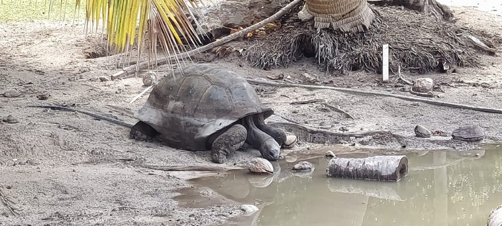 Ab dem vierten Tag auf Praslin hatten wir keinen Mietwagen mehr zur Verfügung. Das war jedoch nicht schlimm, denn wir hatten mit unserem Gastgeber eine Ausfahrt auf seiner Jacht nach Curieuse gebucht. Das Wetter hielt und so konnten wir im Sonnenschein mit Martin die hier frei lebenden Schildkröten besuchen, den Mangrovenwald über einen Steg durchqueren, ein super leckeres Barbecue genießen (natürlich mit Fisch) und anschließend am Strand etwas baden.