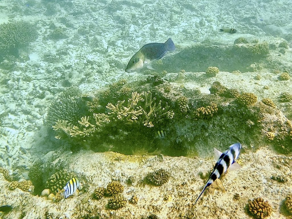 Nach Curieuse ging es weiter zum Schnorcheln vor St. Pierre. Wir haben viele tolle Fische gesehen und tatsächlich sind die Riffe hier recht intakt. Die meisten Oberflächen sind Granitfelsen, die auch unter Wasser das Bild der Inseln bestimmen.